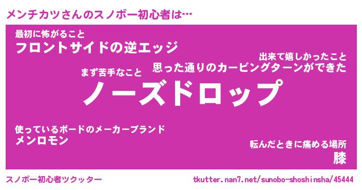 | ヘコむあだ名 | 『メンふぇ~』『牛乳』『メンぷりん』 |