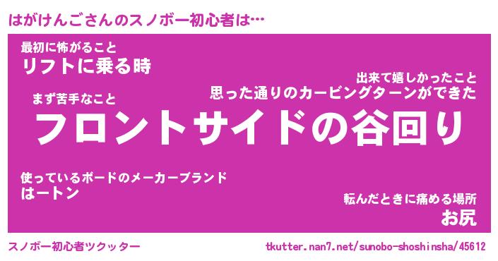 | ヘコむあだ名 | 『はがもー』『なまこ酢』『はが太郎』 |