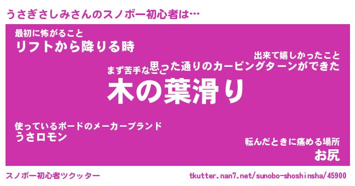 | 男性向けラノベタイトル風あだ名 | 『うさぎさしみの憂鬱』 |