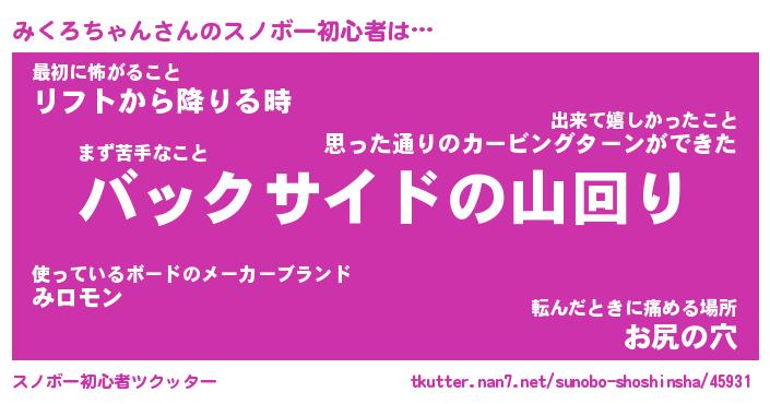 | ヘコむあだ名 | 『みくっふぃ~』『なまこ酢』 |