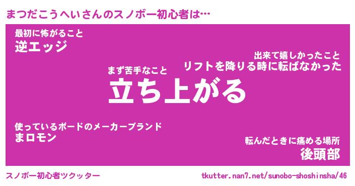 | ヘコむあだ名 | 『まつにゅー』『つくし』 |