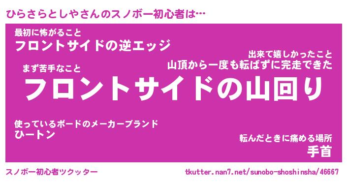 | ヘコむあだ名 | 『ひらっふぃ~』『牛乳』『ひら太郎』 |