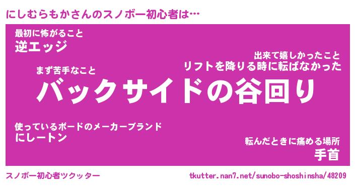 恥ずかしいあだ名 | 『プリティーにしむらもか』『にしっちょ』 |