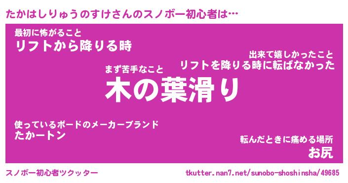 | ツイッター | たかはしりゅうのすけさんのツイッターID『konnyaku_kun』 |