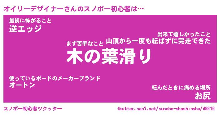 | 伝説のあだ名 | 『伝説のスナイパーオイリーデザイナー』 |