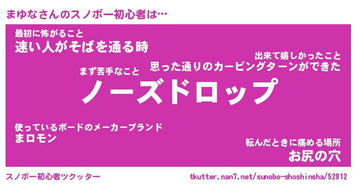 | ヘコむあだ名 | 『まゆふぇ~』『牛乳』『まゆお』 |