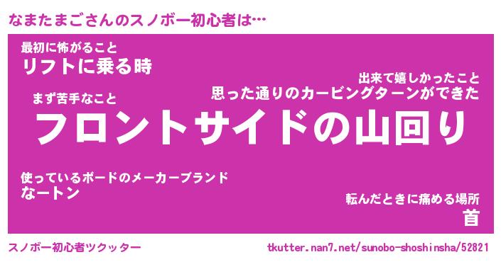 | ヘコむあだ名 | 『なまにー』『つくし』『なまっぺ』 |
