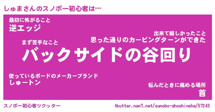 | ヘコむあだ名 | 『しゅもー』『つくし』『しゅお』 |