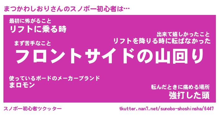 | 男性向けラノベタイトル風あだ名 | 『マツカワシオリアートオンライン』 |