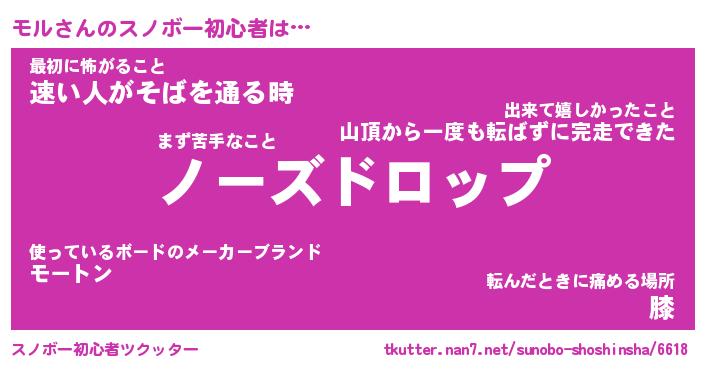 | ヘコむあだ名 | 『モルもー』『酢こんぶ』『モル(爆)』 |