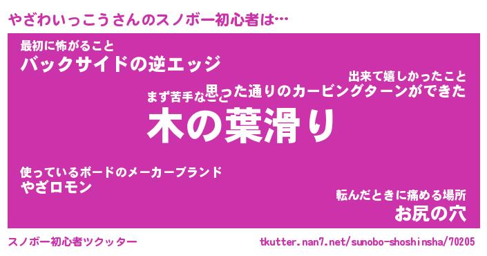 | ヘコむあだ名 | 『やざっふぃ~』『つくし』 |