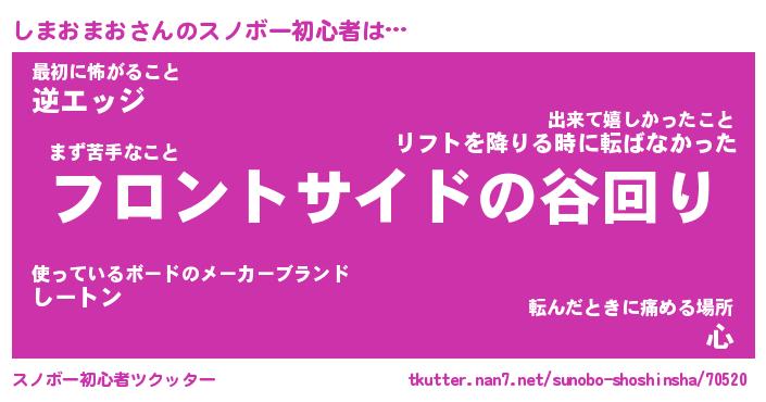 | ヘコむあだ名 | 『しまにゅー』『牛乳』『しまっ子』 |