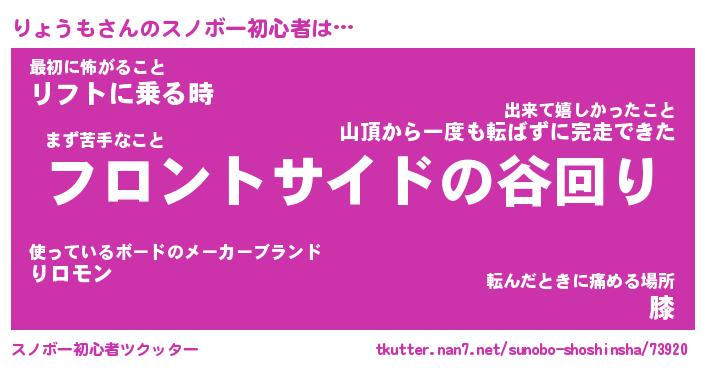 | ヘコむあだ名 | 『りょにゅー』『酢こんぶ』『りょを』 |