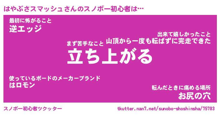 はやぶさスマッシュさんのスノボー初心者をツクッター!