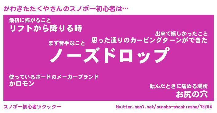 | ヒーロー風カッコイイあだ名 | 『スーパーカワキタタクヤ』 |