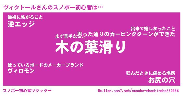 | ヘコむあだ名 | 『ヴィにー』『つくし』『ヴィを』 |
