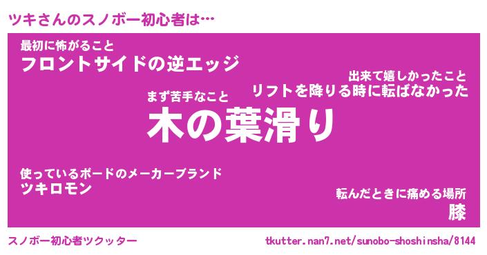 | ヘコむあだ名 | 『ツキにー』『レバニラ』『ツキ(爆)』 |