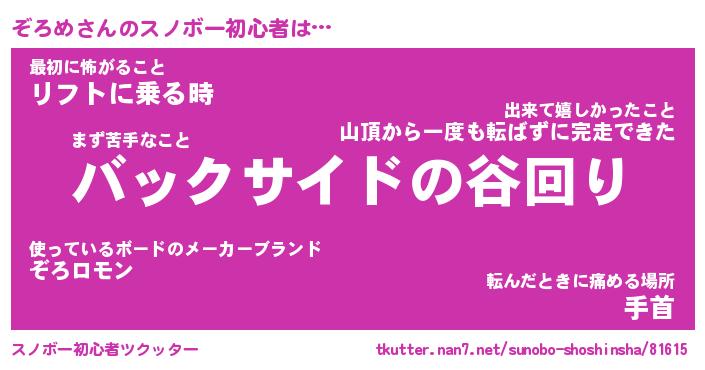| ヘコむあだ名 | 『ぞろもー』『なまこ酢』『ぞろっ子』 |