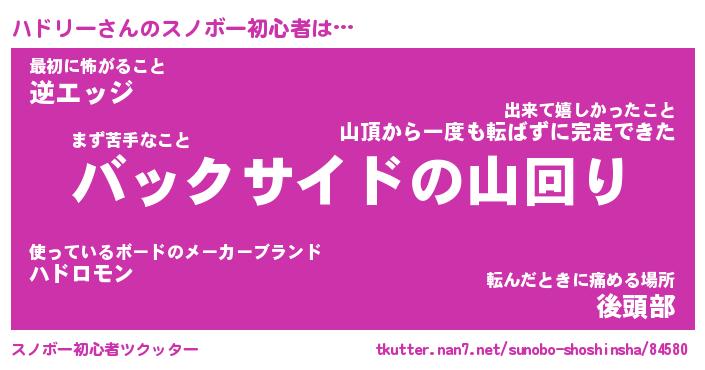 | ヘコむあだ名 | 『ハドっふぃ~』『つくし』 |
