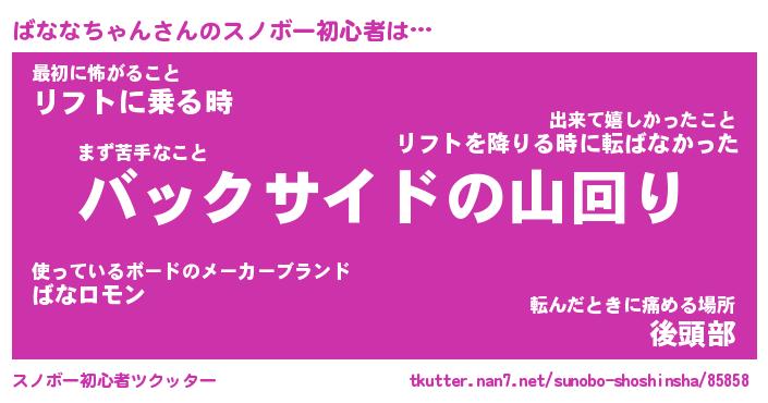 | ツイッター | ばななちゃんさんのツイッターID『namakemono_star』 |