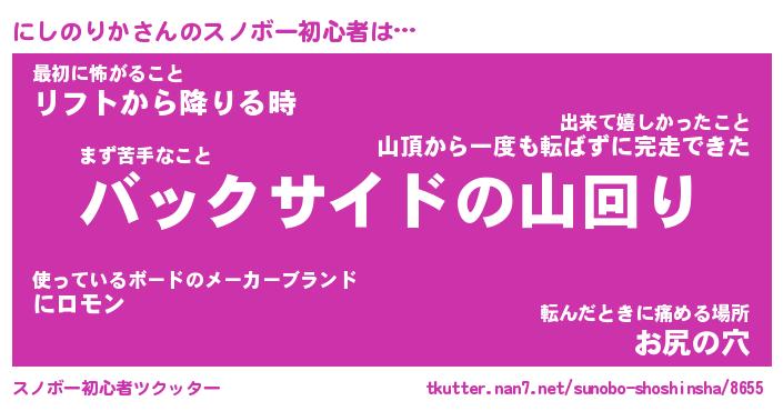 | ヘコむあだ名 | 『にしもー』『豆乳』『にし太郎』 |