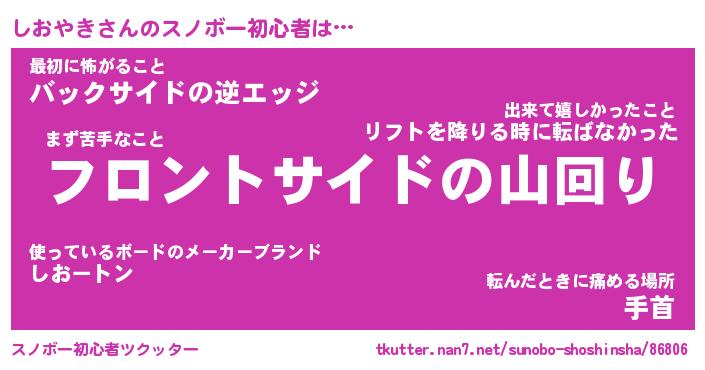 | ファンタジー風あだ名 | 『シオフェル』『エターナルシオヤキー』 |