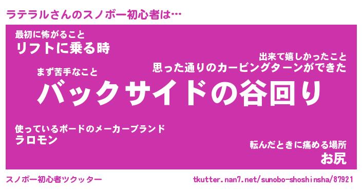 | ヘコむあだ名 | 『ラテにー』『つくし』『ラテを』 |