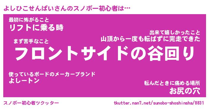 | ヘコむあだ名 | 『よしふぇ~』『なまこ酢』 |