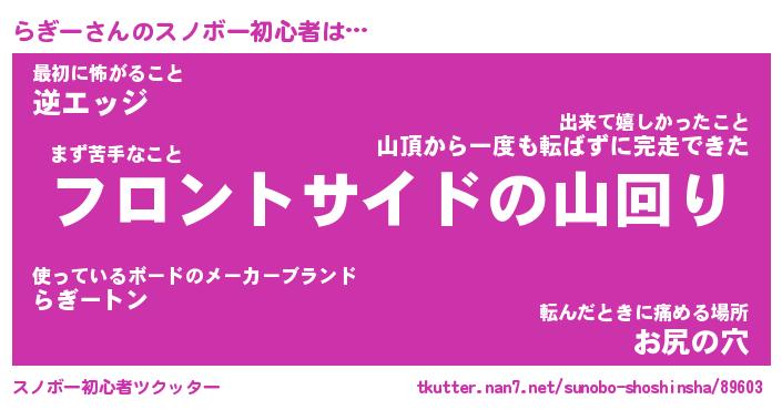 | ヘコむあだ名 | 『らぎっふぃ~』『つくし』『らぎお』 |