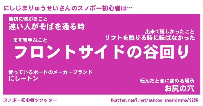 | ヘコむあだ名 | 『にしっふぃ~』『酢こんぶ』 |