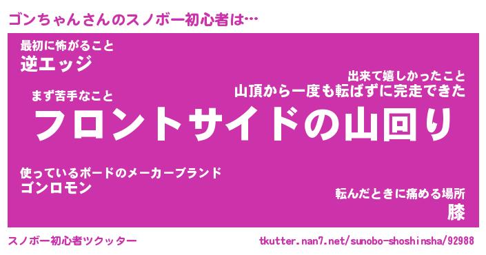 | ヘコむあだ名 | 『ゴンにー』『酢こんぶ』『ゴンを』 |