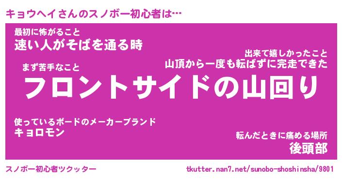 | ヘコむあだ名 | 『キョにー』『レバニラ』『キョ太郎』 |