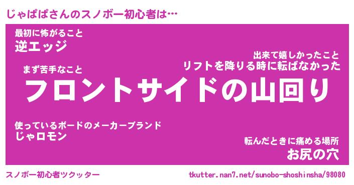 | 意味不明あだ名 | 『ペロリンじゃぱぱ』『永久保存じゃぱぱ』 |