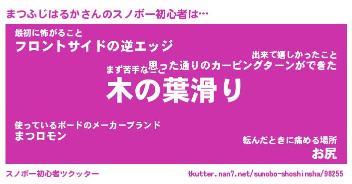 | 伝説のあだ名 | 『伝説のスナイパーまつふじはるか』 |