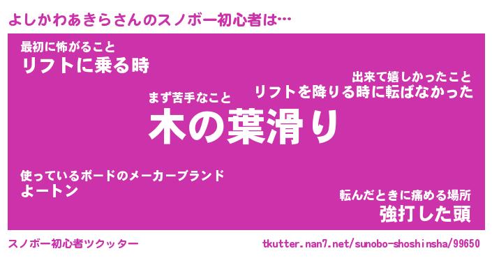 | 伝説のあだ名 | 『伝説のスナイパーよしかわあきら』 |