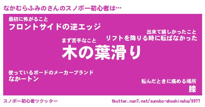 | 伝説のあだ名 | 『伝説のスナイパーなかむらふみの』 |