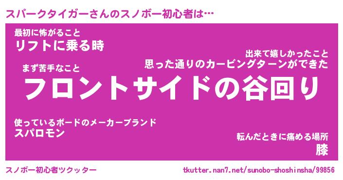 | 男性向けラノベタイトル風あだ名 | 『スパークタイガーの憂鬱』 |