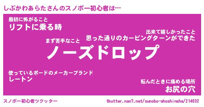 | ヘコむあだ名 | 『しぶっふぃ~』『豆乳』『しぶお』 |
