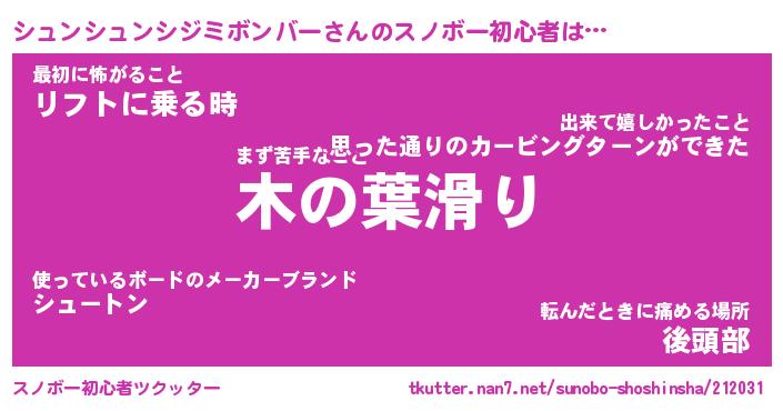 | ツイッター | シュンシュンシジミボンバーさんのツイッターID『konnyaku_nyan』 |