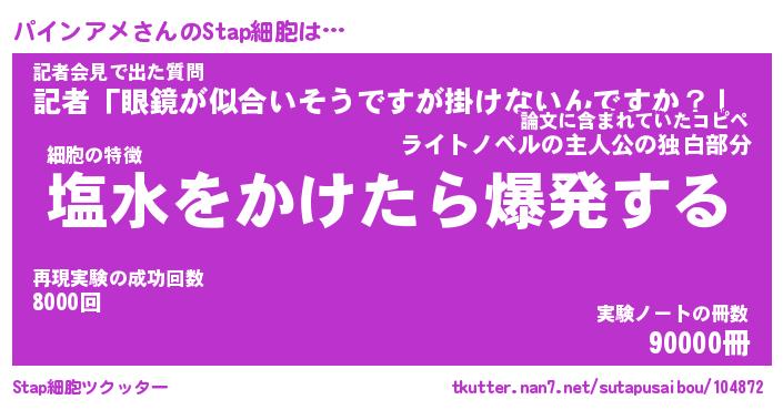 | ヒーロー風カッコイイあだ名 | 『スーパーパインアメ』『天弓騎士パイ』 |