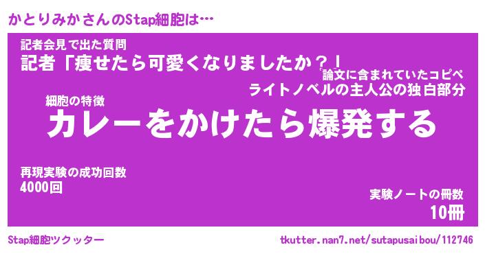 | 伝説のあだ名 | 『封印されし竜騎士かとりみか』 |