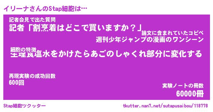 | 意味不明あだ名 | 『ペロリンイリーナ』『永久保存イリーナ』 |