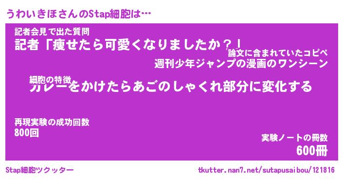 | ヘコむあだ名 | 『うわもー』『なまこ酢』『うわっ子』 |