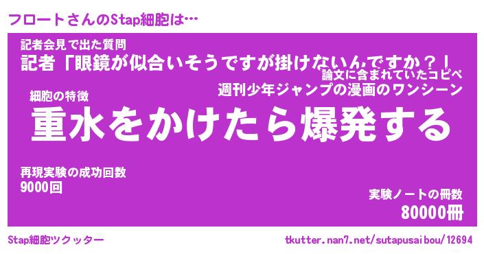 | 意味不明あだ名 | 『ペロリンフロート』『永久保存フロート』 |