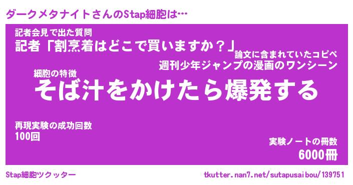 | 料理風あだ名 | 『ネギたっぷりダークメタナイトの南蛮漬け』 |