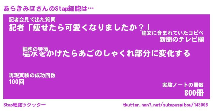 | ヘコむあだ名 | 『あらふぇ~』『酢こんぶ』 |
