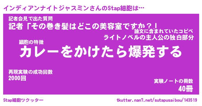 | 欧米人風あだ名 | 『マイケルインディアンナイトジャスミン』 |