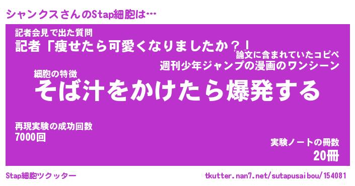 | 胡散臭い通販商品みたいなあだ名 | 『億万長者になれるブレスレット…その名も「シャンクス」』 |