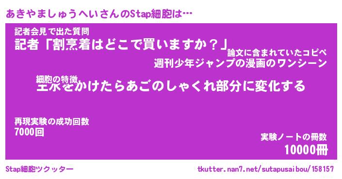 | 伝説のあだ名 | 『伝説のスナイパーあきやましゅうへい』 |