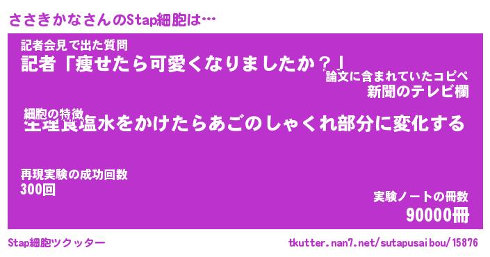 | 伝説のあだ名 | 『伝説のスナイパーささきかな』 |